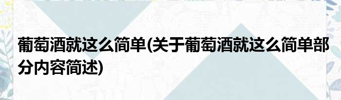 导读 大家好,今天小方来说说一篇关于葡萄酒就这么简单,关于葡萄酒就这么简单部分内容简述的文章,那么现在就为大家来简单介绍下,希望对各位小