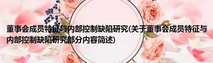 董事会成员特征与内部控制缺陷研究(关于董事会成员特征与内部控制缺陷研究部分内容简述)