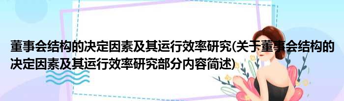 董事会结构的决定因素及其运行效率研究(关于董事会结构的决定因素及其运行效率研究部分内容简述)