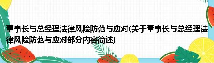 董事长与总经理法律风险防范与应对(关于董事长与总经理法律风险防范与应对部分内容简述)