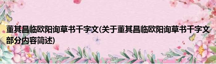 董其昌临欧阳询草书千字文(关于董其昌临欧阳询草书千字文部分内容简述)