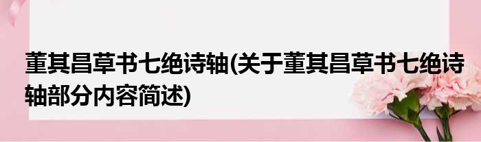 董其昌草书七绝诗轴(关于董其昌草书七绝诗轴部分内容简述)