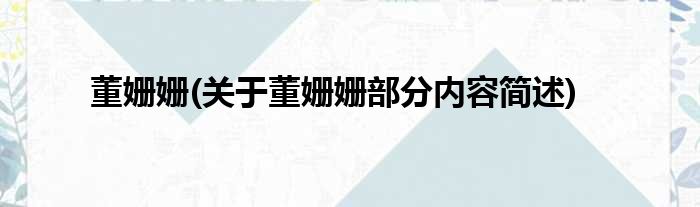 导读 大家好,今天小方来说说一篇关于董姗姗,关于董姗姗部分内容简述的文章,那么现在就为大家来简单介绍下,希望对各位小伙伴们有所帮助。