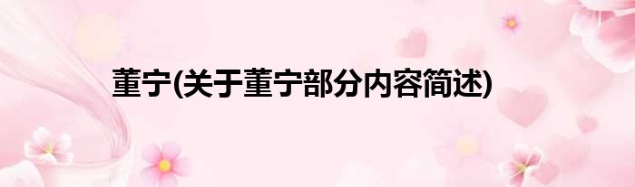 大家好,今天小方来说说一篇关于董宁,关于董宁部分内容简述的文章,那么现在就为大家来简单介绍下,希望对各位小伙伴们有所帮助。