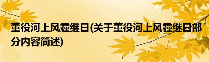 董役河上风霾继日(关于董役河上风霾继日部分内容简述)