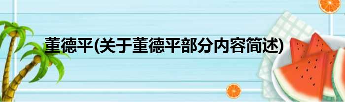 大家好,今天小方来说说一篇关于董德平,关于董德平部分内容简述的文章,那么现在就为大家来简单介绍下,希望对各位小伙伴们有所帮助。