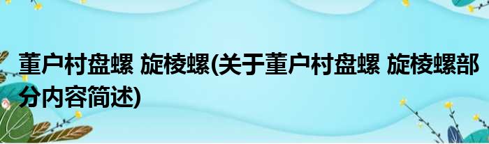 董户村盘螺 旋棱螺(关于董户村盘螺 旋棱螺部分内容简述)