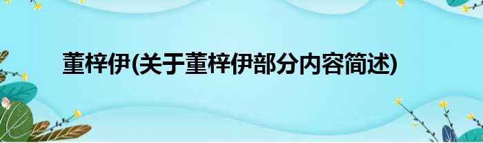 导读 大家好,今天小方来说说一篇关于董梓伊,关于董梓伊部分内容简述的文章,那么现在就为大家来简单介绍下,希望对各位小伙伴们有所帮助。