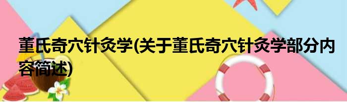 董氏奇穴针灸学(关于董氏奇穴针灸学部分内容简述)