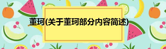 大家好,今天小方来说说一篇关于董珂,关于董珂部分内容简述的文章,那么现在就为大家来简单介绍下,希望对各位小伙伴们有所帮助。