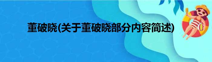 导读 大家好,今天小方来说说一篇关于董破晓,关于董破晓部分内容简述的文章,那么现在就为大家来简单介绍下,希望对各位小伙伴们有所帮助。