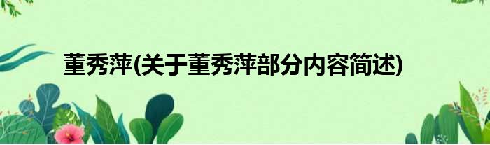 导读 大家好,今天小方来说说一篇关于董秀萍,关于董秀萍部分内容简述的文章,那么现在就为大家来简单介绍下,希望对各位小伙伴们有所帮助。