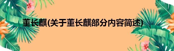 导读 大家好,今天小方来说说一篇关于董长麒,关于董长麒部分内容简述的文章,那么现在就为大家来简单介绍下,希望对各位小伙伴们有所帮助。