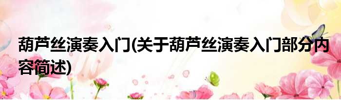 葫芦丝演奏入门(关于葫芦丝演奏入门部分内容简述)