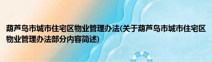 葫芦岛市城市住宅区物业管理办法(关于葫芦岛市城市住宅区物业管理办法部分内容简述)