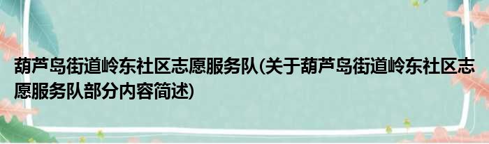 葫芦岛街道岭东社区志愿服务队(关于葫芦岛街道岭东社区志愿服务队部分内容简述)