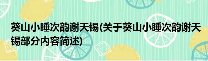 葵山小睡次韵谢天锡(关于葵山小睡次韵谢天锡部分内容简述)