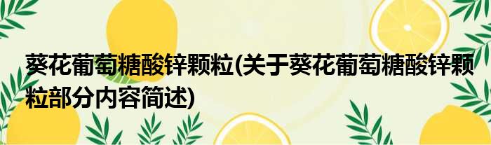 葵花葡萄糖酸锌颗粒(关于葵花葡萄糖酸锌颗粒部分内容简述)
