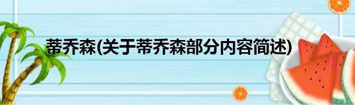 导读 大家好,今天小方来说说一篇关于蒂乔森,关于蒂乔森部分内容简述的文章,那么现在就为大家来简单介绍下,希望对各位小伙伴们有所帮助。