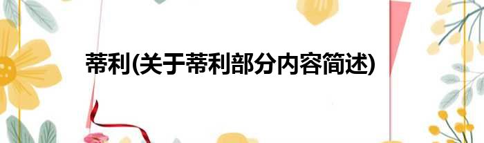 导读 大家好,今天小方来说说一篇关于蒂利,关于蒂利部分内容简述的文章,那么现在就为大家来简单介绍下,希望对各位小伙伴们有所帮助。