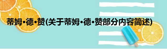 蒂姆·德·赞(关于蒂姆·德·赞部分内容简述)
