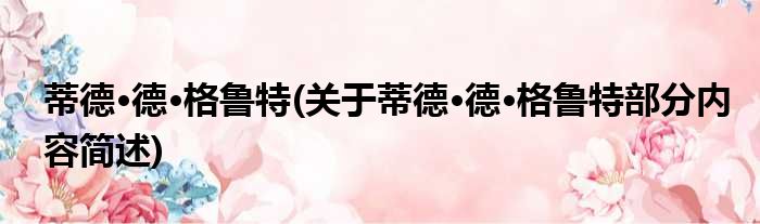 蒂德·德·格鲁特(关于蒂德·德·格鲁特部分内容简述)