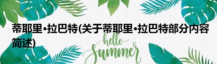 大家好,今天小方来说说一篇关于蒂耶里·拉巴特,关于蒂耶里·拉巴特部分内容简述的文章,那么现在就为大家来简单介绍下,希望对各位小伙伴们有所帮助。