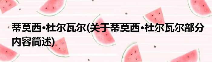 大家好,今天小方来说说一篇关于蒂莫西·杜尔瓦尔,关于蒂莫西·杜尔瓦尔部分内容简述的文章,那么现在就为大家来简单介绍下,希望对各位小伙伴们有所帮助。