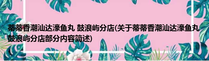 蒂蒂香潮汕达濠鱼丸 鼓浪屿分店(关于蒂蒂香潮汕达濠鱼丸 鼓浪屿分店部分内容简述)