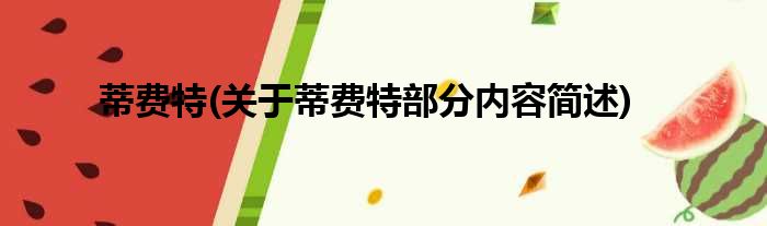 导读 大家好,今天小方来说说一篇关于蒂费特,关于蒂费特部分内容简述的文章,那么现在就为大家来简单介绍下,希望对各位小伙伴们有所帮助。
