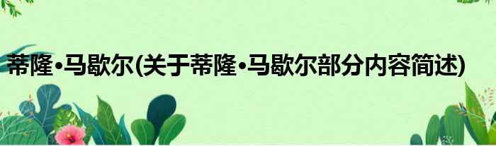 蒂隆·马歇尔(关于蒂隆·马歇尔部分内容简述)