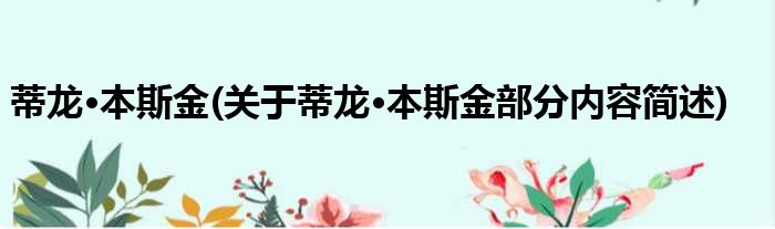 蒂龙·本斯金(关于蒂龙·本斯金部分内容简述)