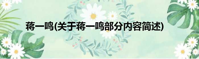 蒋一鸣(关于蒋一鸣部分内容简述)