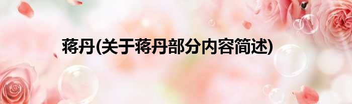 导读 大家好,今天小方来说说一篇关于蒋丹,关于蒋丹部分内容简述的文章,那么现在就为大家来简单介绍下,希望对各位小伙伴们有所帮助。