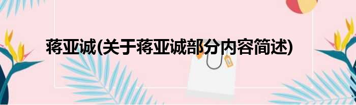 蒋亚诚(关于蒋亚诚部分内容简述)