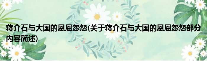 蒋介石与大国的恩恩怨怨(关于蒋介石与大国的恩恩怨怨部分内容简述)
