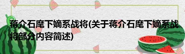 蒋介石麾下嫡系战将(关于蒋介石麾下嫡系战将部分内容简述)