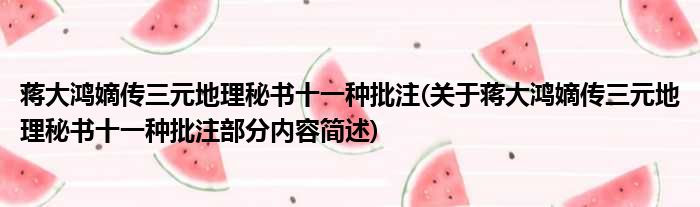 蒋大鸿嫡传三元地理秘书十一种批注(关于蒋大鸿嫡传三元地理秘书十一种批注部分内容简述)