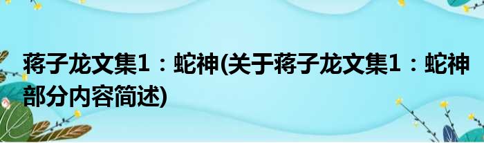 导读 大家好,今天小方来说说一篇关于蒋子龙文集1:蛇神,关于蒋子龙文集1:蛇神部分内容简述的文章,那么现在就为大家来简单介绍下,希望对各位