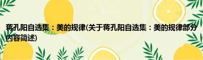 蒋孔阳自选集:美的规律(关于蒋孔阳自选集:美的规律部分内容简述)
