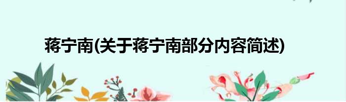 大家好,今天小方来说说一篇关于蒋宁南,关于蒋宁南部分内容简述的文章,那么现在就为大家来简单介绍下,希望对各位小伙伴们有所帮助。