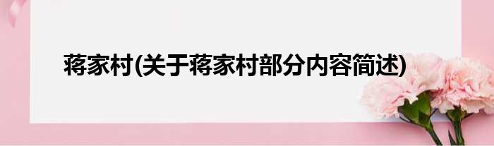 导读 大家好,今天小方来说说一篇关于蒋家村,关于蒋家村部分内容简述的文章,那么现在就为大家来简单介绍下,希望对各位小伙伴们有所帮助。