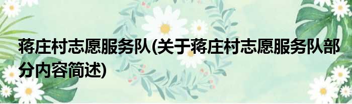 蒋庄村志愿服务队(关于蒋庄村志愿服务队部分内容简述)
