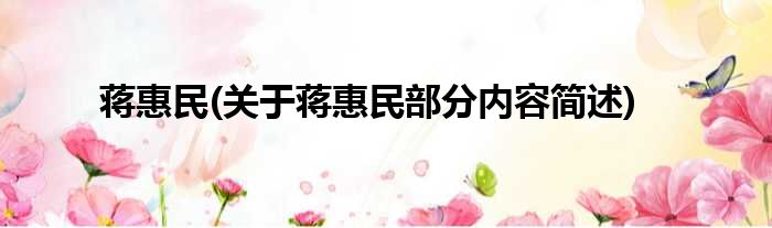 大家好,今天小方来说说一篇关于蒋惠民,关于蒋惠民部分内容简述的文章,那么现在就为大家来简单介绍下,希望对各位小伙伴们有所帮助。