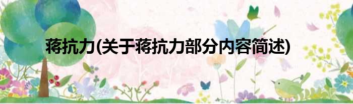 导读 大家好,今天小方来说说一篇关于蒋抗力,关于蒋抗力部分内容简述的文章,那么现在就为大家来简单介绍下,希望对各位小伙伴们有所帮助。