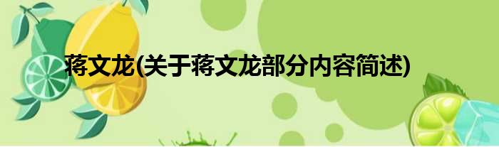 蒋文龙(关于蒋文龙部分内容简述)