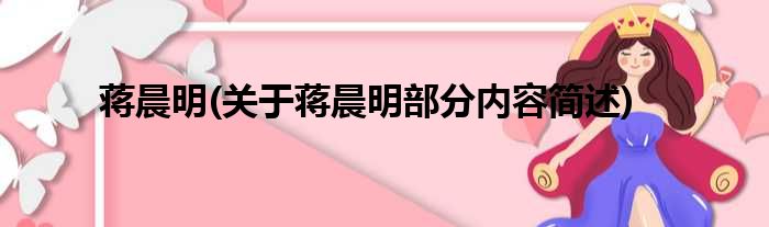 导读 大家好,今天小方来说说一篇关于蒋晨明,关于蒋晨明部分内容简述的文章,那么现在就为大家来简单介绍下,希望对各位小伙伴们有所帮助。