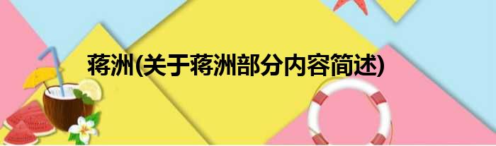 导读 大家好,今天小方来说说一篇关于蒋洲,关于蒋洲部分内容简述的文章,那么现在就为大家来简单介绍下,希望对各位小伙伴们有所帮助。