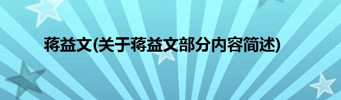 导读 大家好,今天小方来说说一篇关于蒋益文,关于蒋益文部分内容简述的文章,那么现在就为大家来简单介绍下,希望对各位小伙伴们有所帮助。