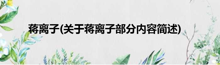 导读 大家好,今天小方来说说一篇关于蒋离子,关于蒋离子部分内容简述的文章,那么现在就为大家来简单介绍下,希望对各位小伙伴们有所帮助。